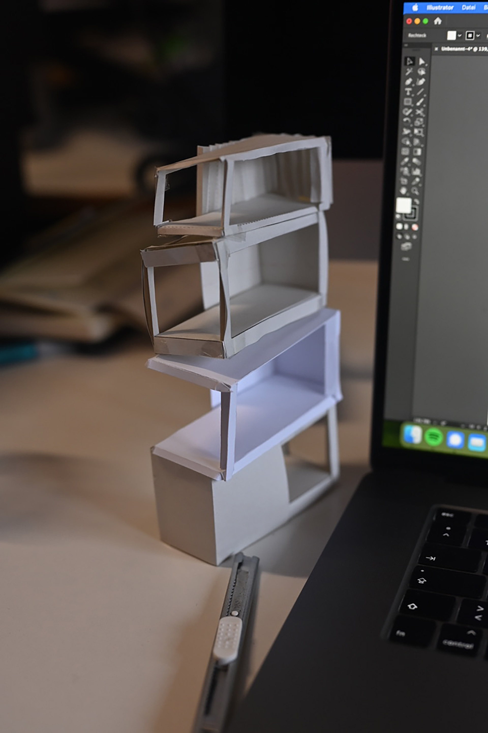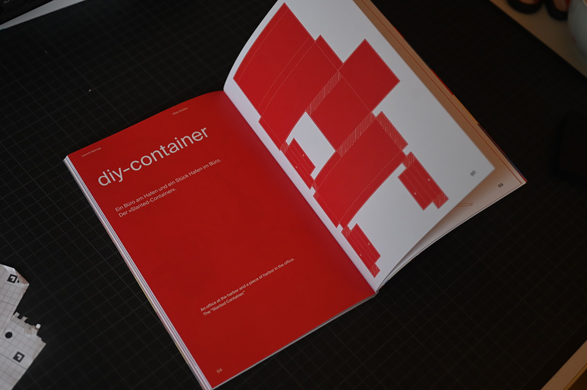 Slanted has moved in 2021/2022. The DIY container was created in a three-day workshop with individual projects that were brought together in a publication. My idea was a miniature realization of a central element that makes the new Slanted office so unique. A little bit slanted office for your own.